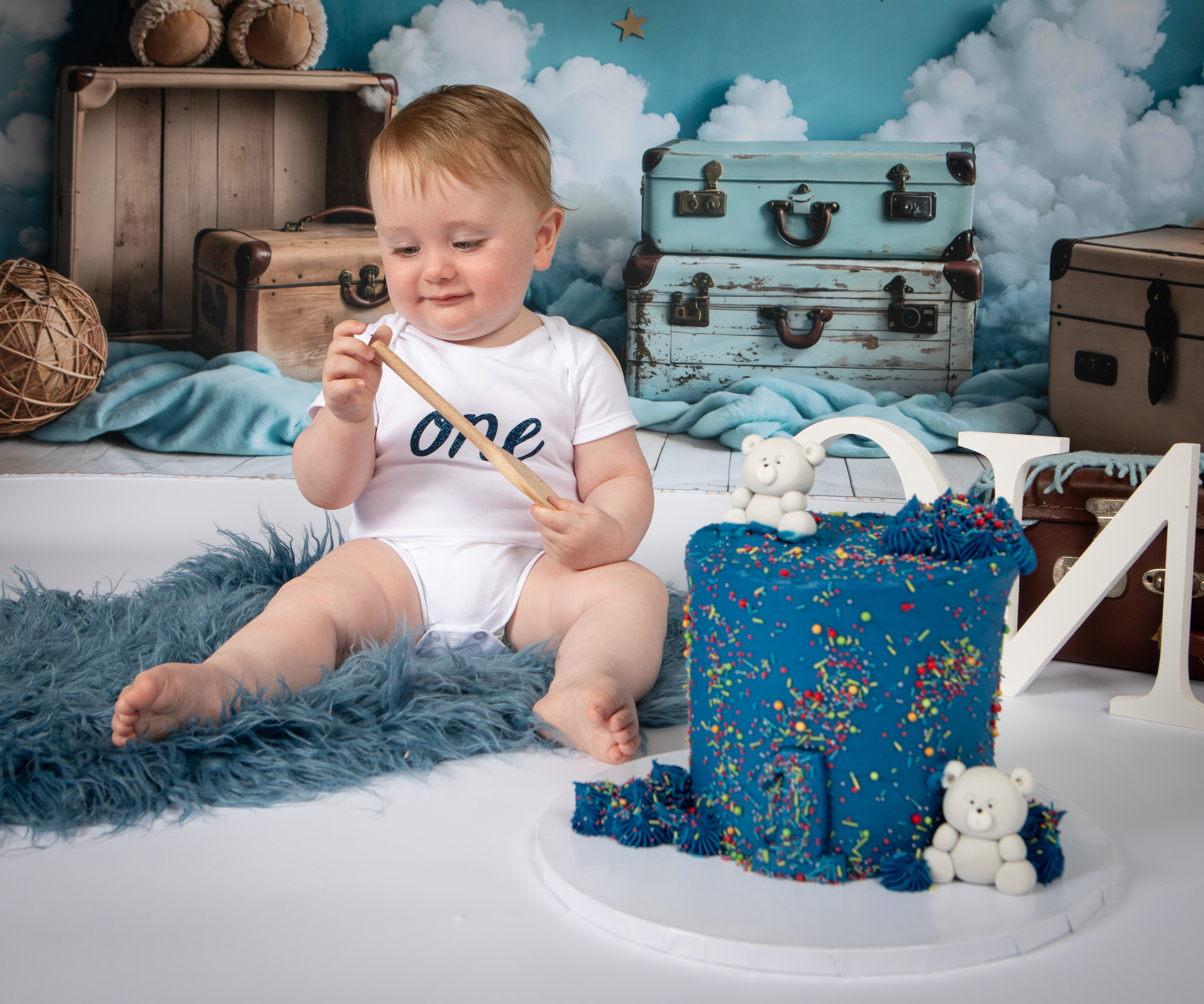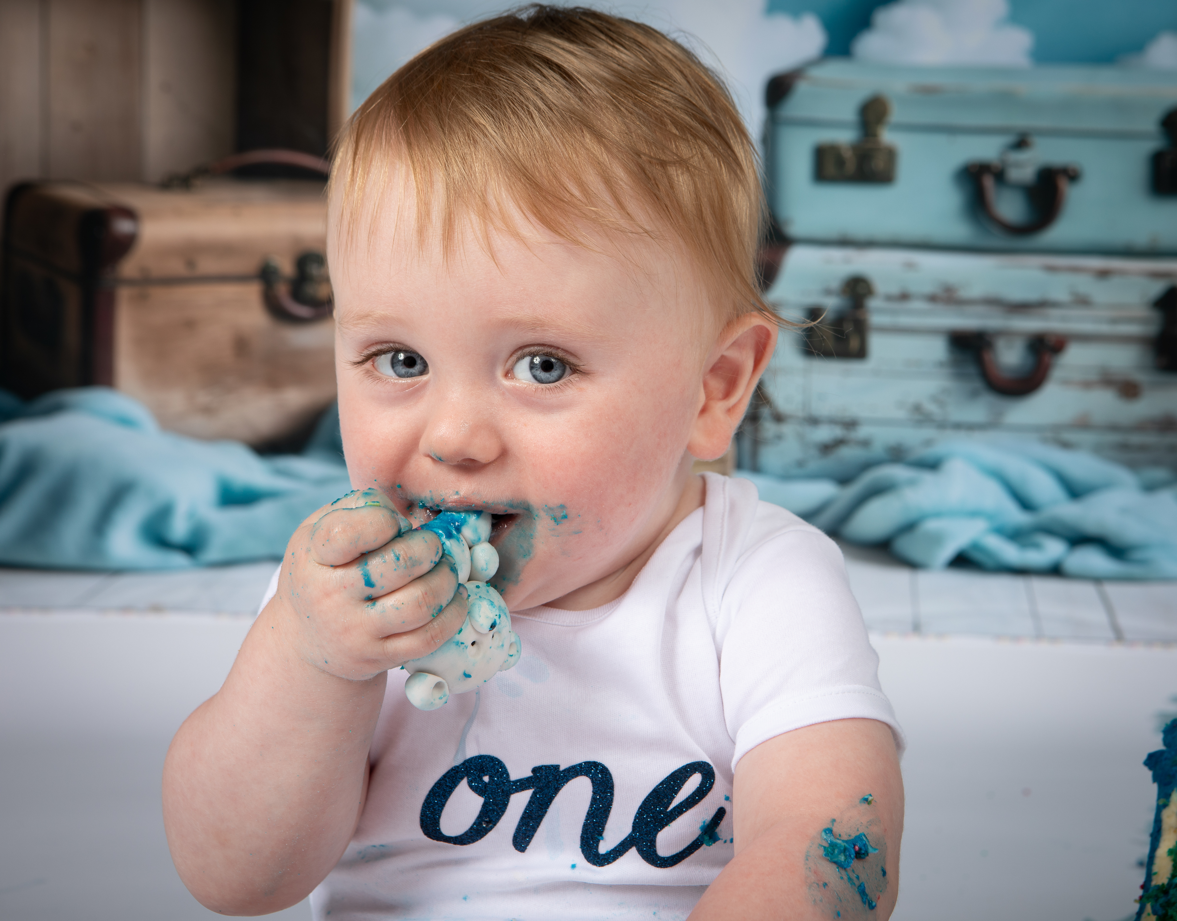 Child Milestone photography cake smash Aberdeenshire Huntly